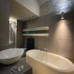 Portici Design Suite, appartamento di lusso nel centro storico di Bologna, finiture eleganti, bagno raffinato con vasca e doccia, studiolo per lavoro/studio, atmosfera tranquilla.